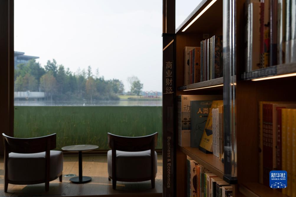 這是位於四川天府新區興隆湖畔的中信書店一景(10月16日攝)。書店四週被碧水青草環繞,臨湖一側是一面玻璃幕墻,一直延伸至水下。