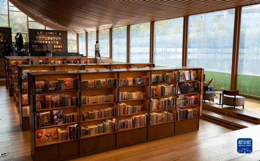 這是位於四川天府新區興隆湖畔的中信書店一景(10月16日攝)。書店四週被碧水青草環繞,臨湖一側是一面玻璃幕墻,一直延伸至水下。
