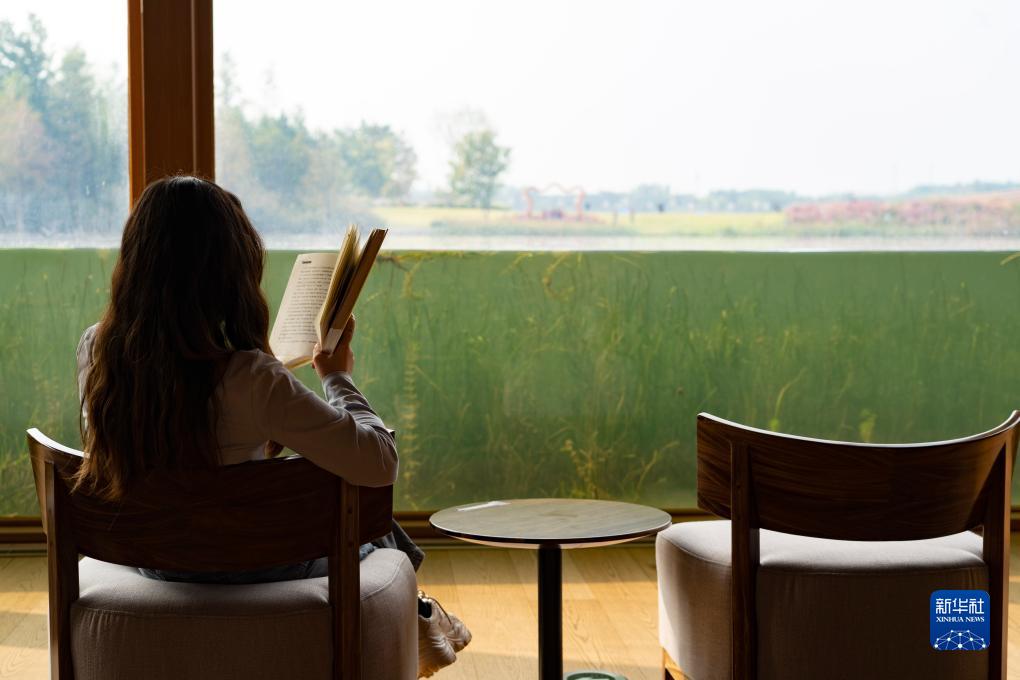 10月16日,市民在位於四川天府新區興隆湖畔的中信書店讀書。