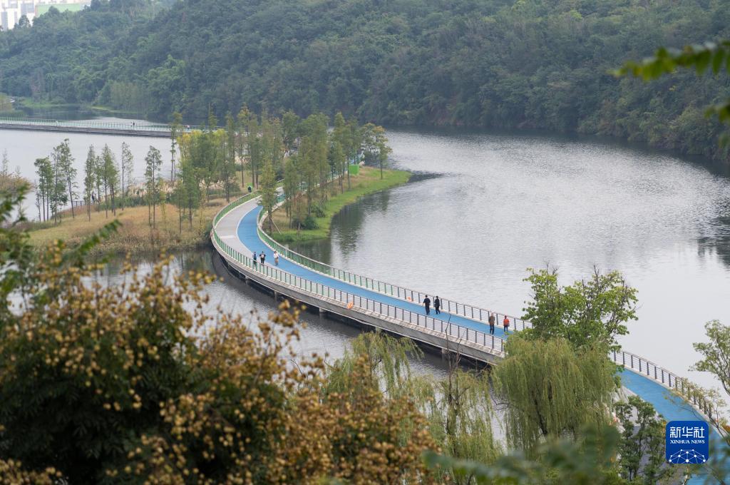 這是四川天府新區興隆湖上的健身步道(10月16日攝)。