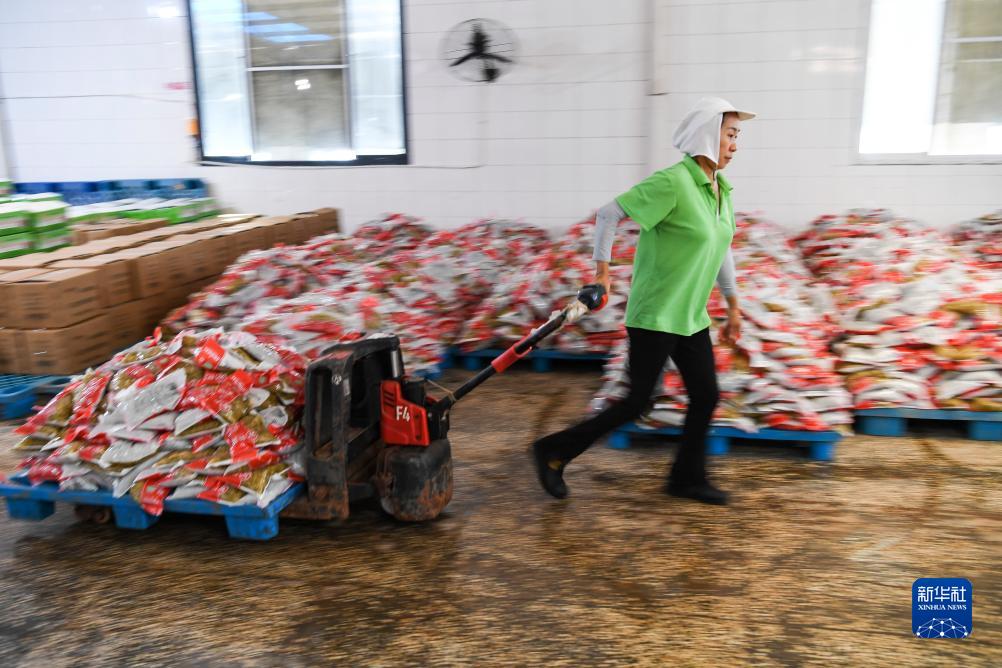 10月16日,重慶市涪陵綠陵實業有限公司工作人員在運送榨菜産品。