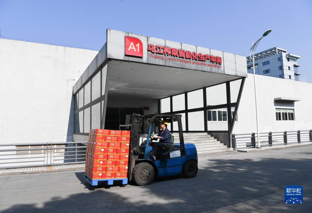 10月16日,重慶市涪陵榨菜集團股份有限公司工作人員在運送榨菜産品。