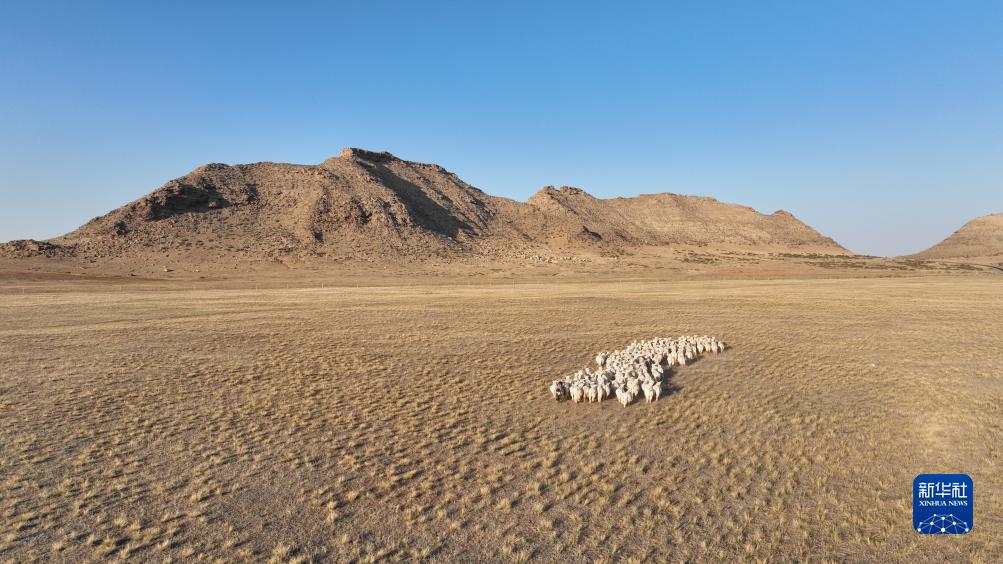 10月15日拍攝的鄂爾多斯草原秋日風光(無人機照片)。