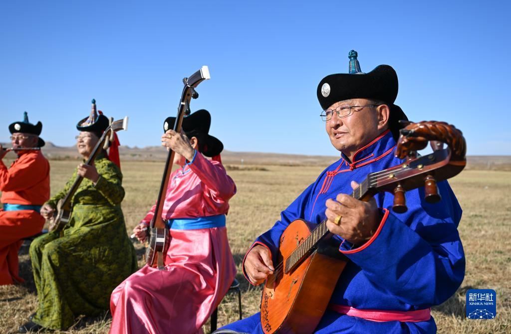 牧忙喂牛羊,閒時撫琴瑟。秋忙之餘,道爾吉與父親明安寶會參加當地一項特色文藝活動——“乃日”。“乃日”可譯為“禮樂”“娛樂”“聚會”,起源於元代,是一種以樂器歌舞為主的綜合性民間表演藝術,被列入內蒙古自治區級非物質文化遺産名錄。