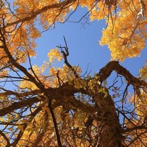 金秋十月,位於三危山下的甘肅省敦煌市莫高鎮的胡楊林被秋色潤染,迎來一年中的最佳觀賞期。金色胡楊在陽光的照射下,美不勝收。