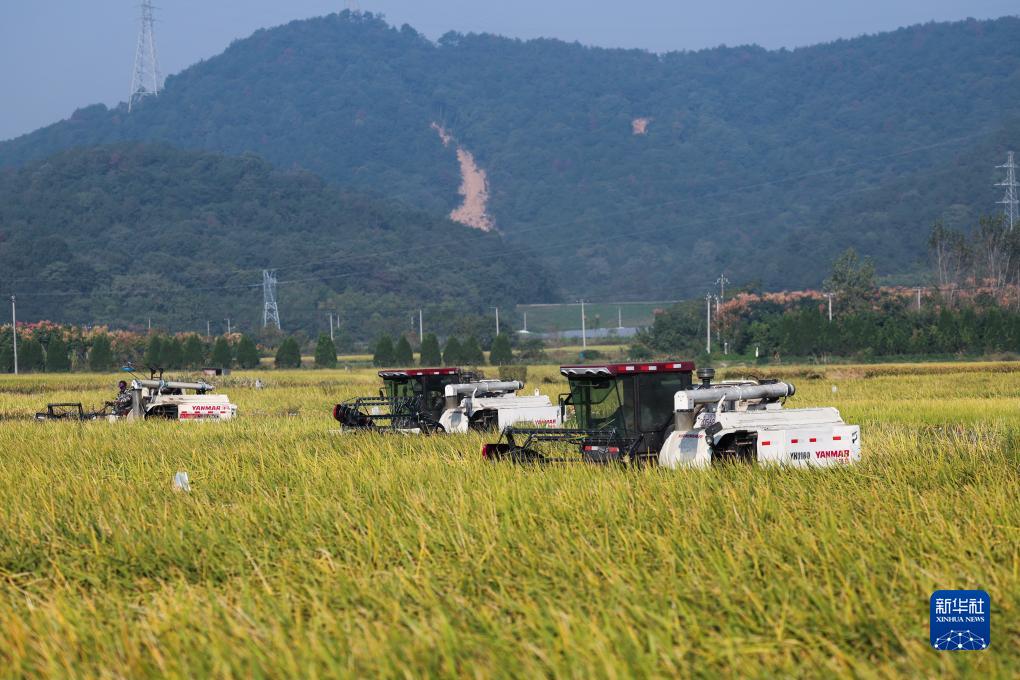 秋收時節,浙江省諸暨市陶朱街道推行“企業+合作社+農戶”專業化糧食生産加工一條龍模式,指導農戶搶抓天氣晴好的有利時機,加快秋收進度,提高秋收效率,確保糧食顆粒歸倉。