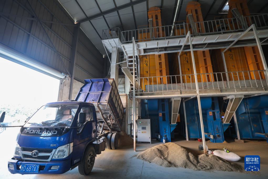秋收時節,浙江省諸暨市陶朱街道推行“企業+合作社+農戶”專業化糧食生産加工一條龍模式,指導農戶搶抓天氣晴好的有利時機,加快秋收進度,提高秋收效率,確保糧食顆粒歸倉。