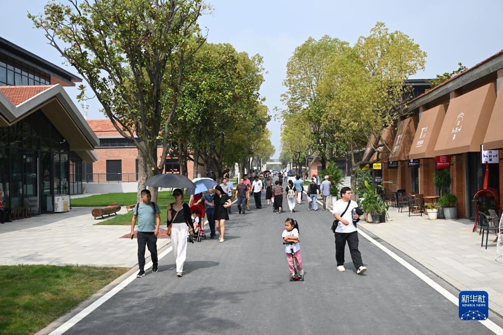 9月27日,游客在合肥駱崗公園內的園博小鎮參觀,該區域由原合肥駱崗機場辦公樓、宿舍區等改造而成。