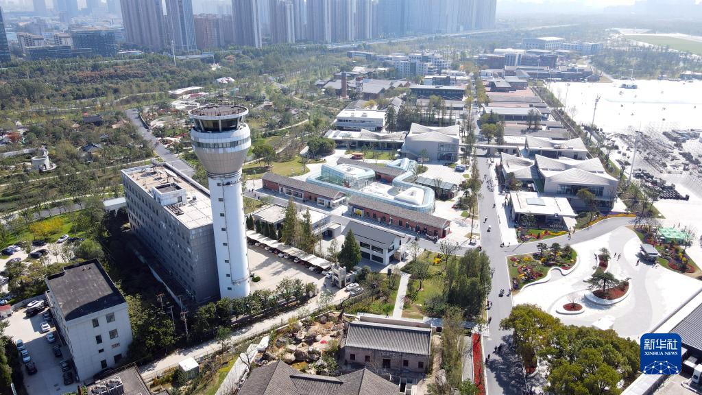 10月17日拍攝的合肥駱崗公園內的園博小鎮,該區域由原合肥駱崗機場辦公樓、宿舍區等改造而成(無人機照片)。