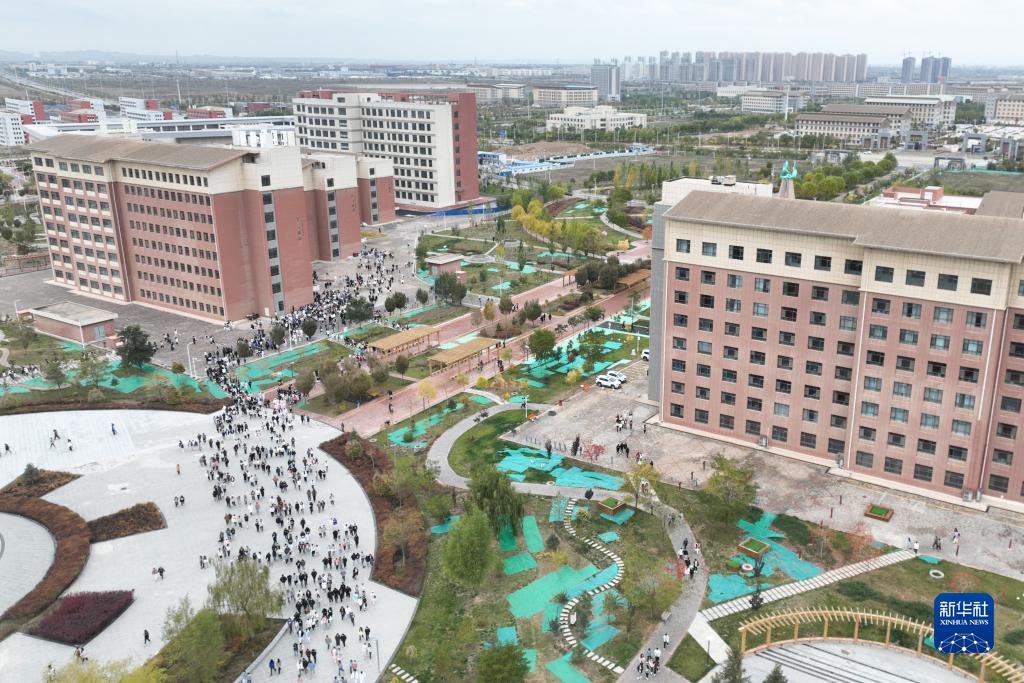 這是10月17日在甘肅省蘭州新區科教園區拍攝的甘肅省衞生職業學院一景(無人機照片)。