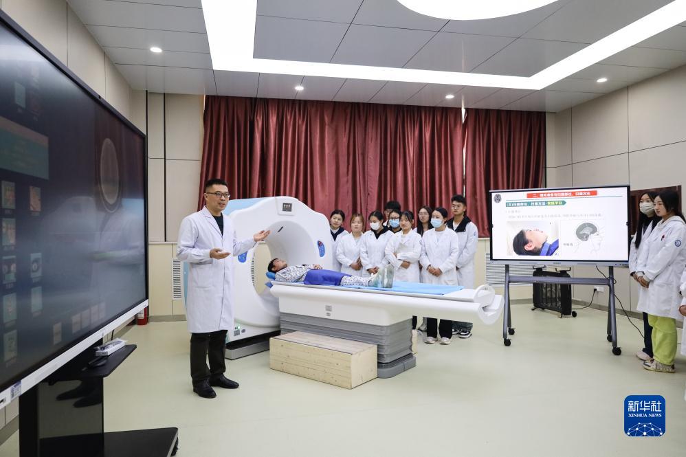 10月17日,在甘肅省蘭州新區科教園區,甘肅省衞生職業學院的學生在醫學影像實訓中心進行情景模擬課程。