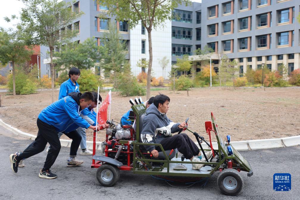 10月17日,在甘肅省蘭州新區科教園區,蘭州石化職業技術大學汽車工程學院的學生進行創新操作課程。