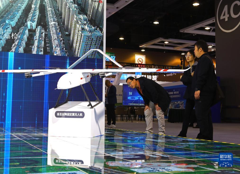 10月18日,參會者在參觀垂直起降固定翼無人機。