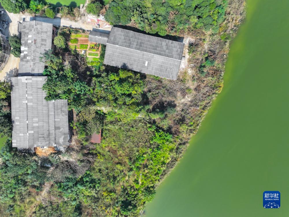 這是在湘潭市雨湖區姜畬鎮白鷺湖村拍攝的由閒置農房改造而成的“5G智慧小菇房”(10月18日攝,無人機照片)。