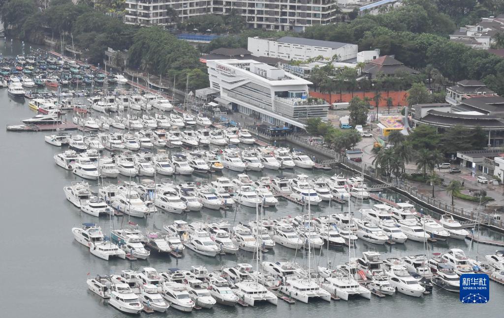 10月18日,游艇停泊在三亞市鴻洲游艇碼頭避風。