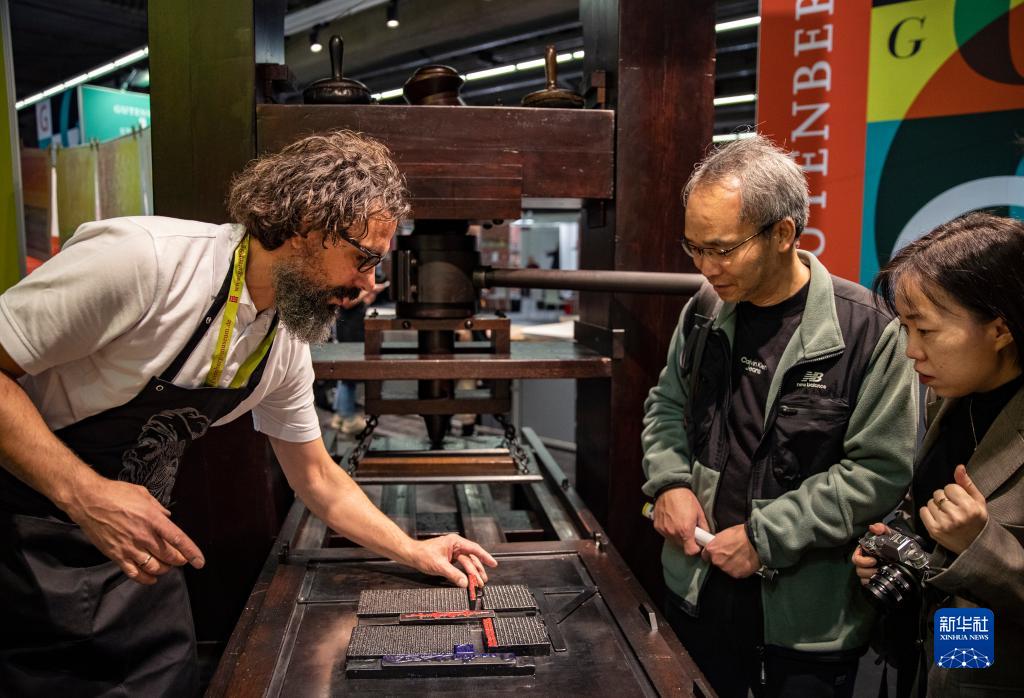 10月18日,一名匠人在德國法蘭克福書展上展示德國傳統印刷技藝。