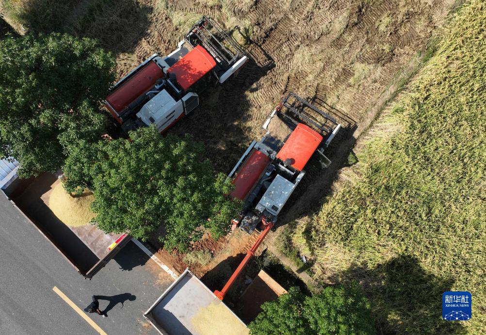 入秋以來,湖南各地晚稻陸續成熟,農民抓住好天氣搶收晾曬。