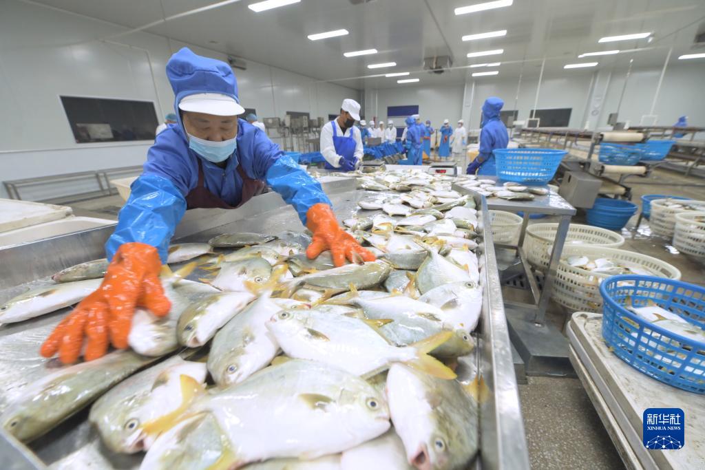 10月17日,位於中印尼“兩國雙園”的福建淼天匯食品有限公司員工在整理準備出口到印尼的魚産品。