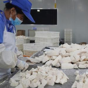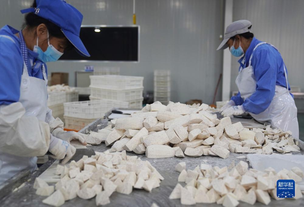 10月18日,在龍岩市長汀縣一檳榔芋加工廠,工人在加工芋頭。
