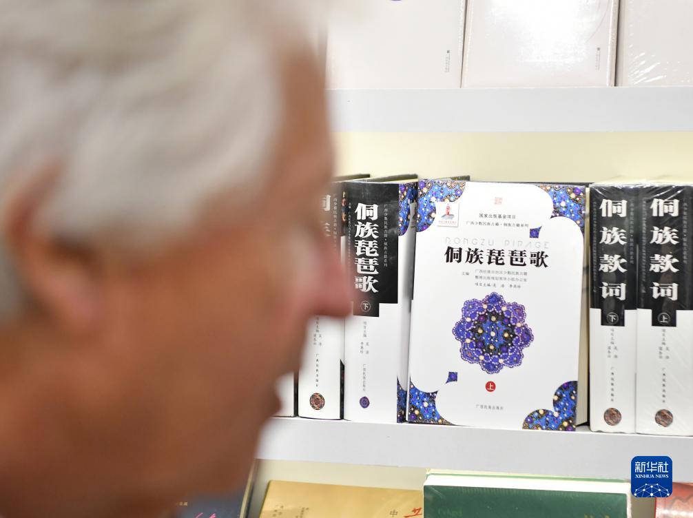 10月18日,一名參觀者在德國法蘭克福書展中國展區參觀。