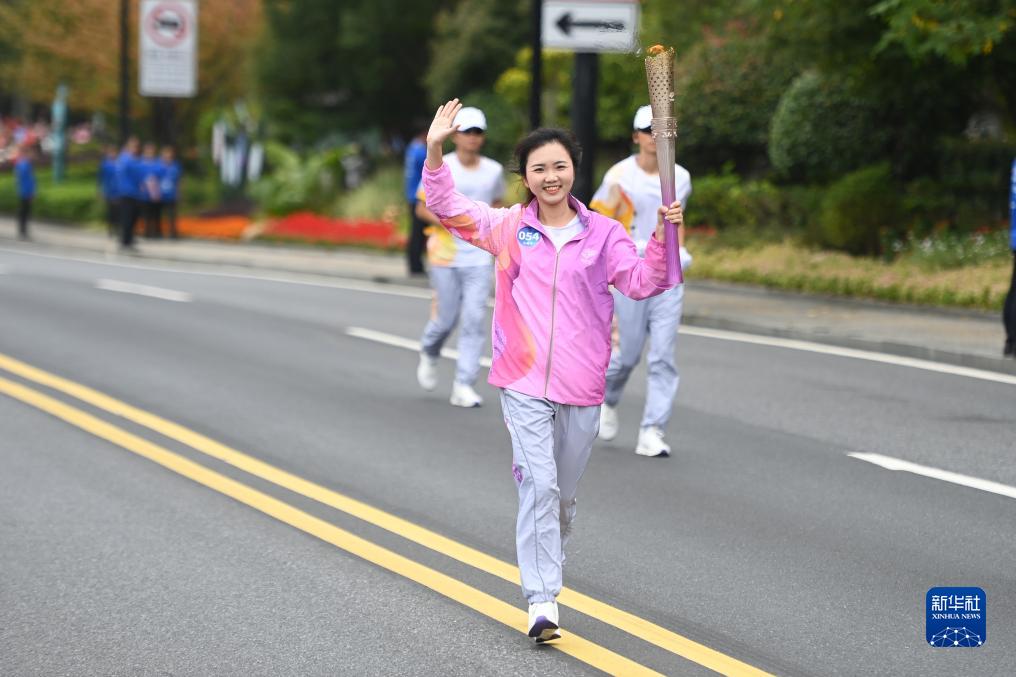10月19日,火炬手殷夢在火炬傳遞中。