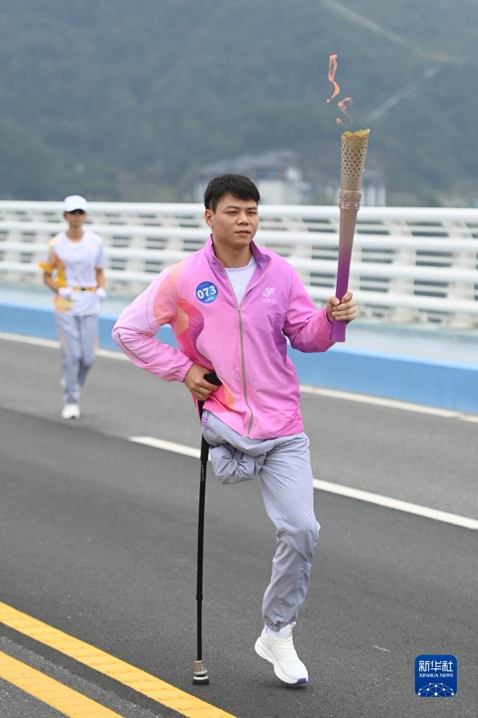 10月19日,火炬手李豪在火炬傳遞中。