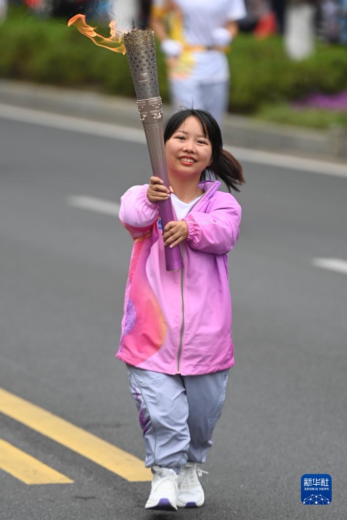 10月19日,火炬手孫菊萍在火炬傳遞中。
