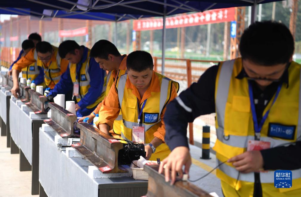 當日,2023年安徽省重點工程職工(農民工)無損檢測探傷工技能競賽在中鐵四局合新鐵路鋪軌基地舉行,來自安徽省重點工程建設崗位上的60名青年技術能手在比賽中各展所長、比拼職業技能。