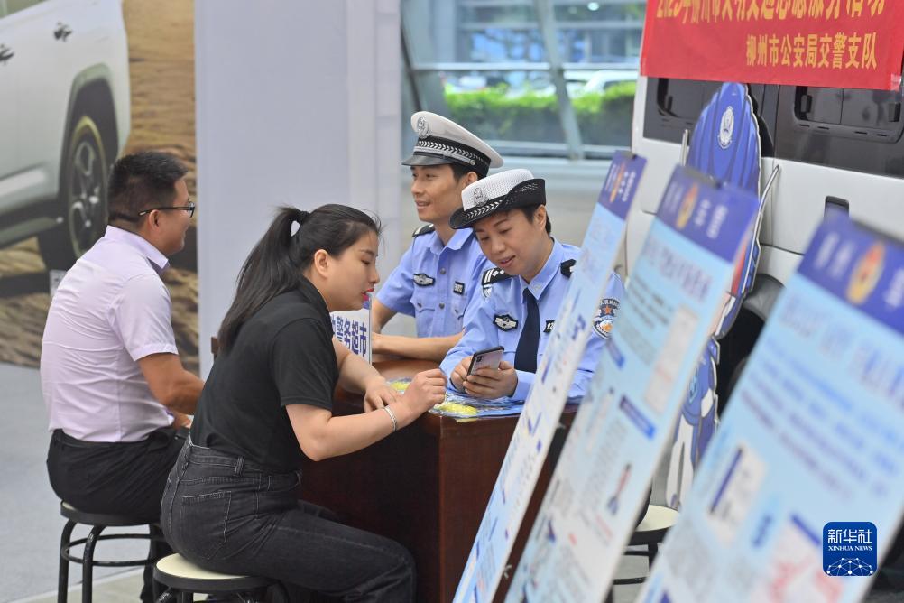 10月19日,在柳州市國際會展中心,市民在“流動警務超市”諮詢、辦理業務。