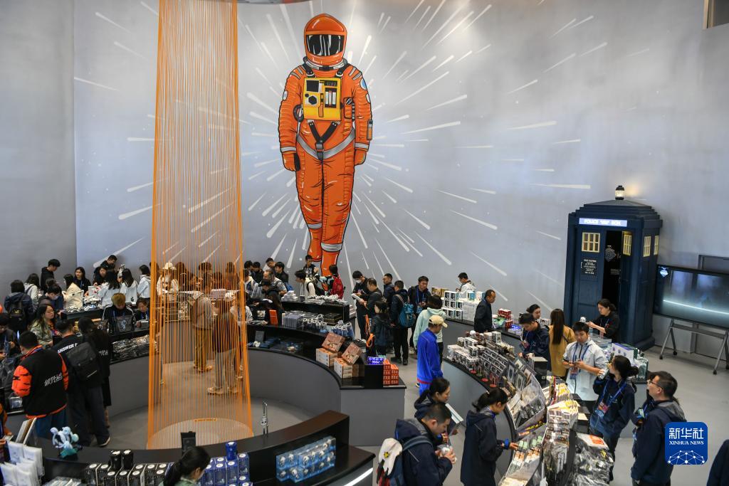 10月18日,在2023成都世界科幻大會主題展覽上,觀眾在挑選科幻IP周邊産品。
