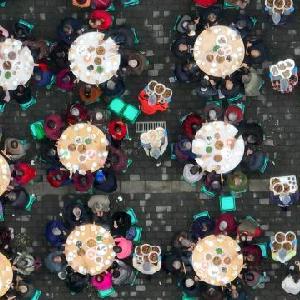 10月19日拍攝的華岩鎮石龍社區“長壽宴”活動現場(無人機照片)。