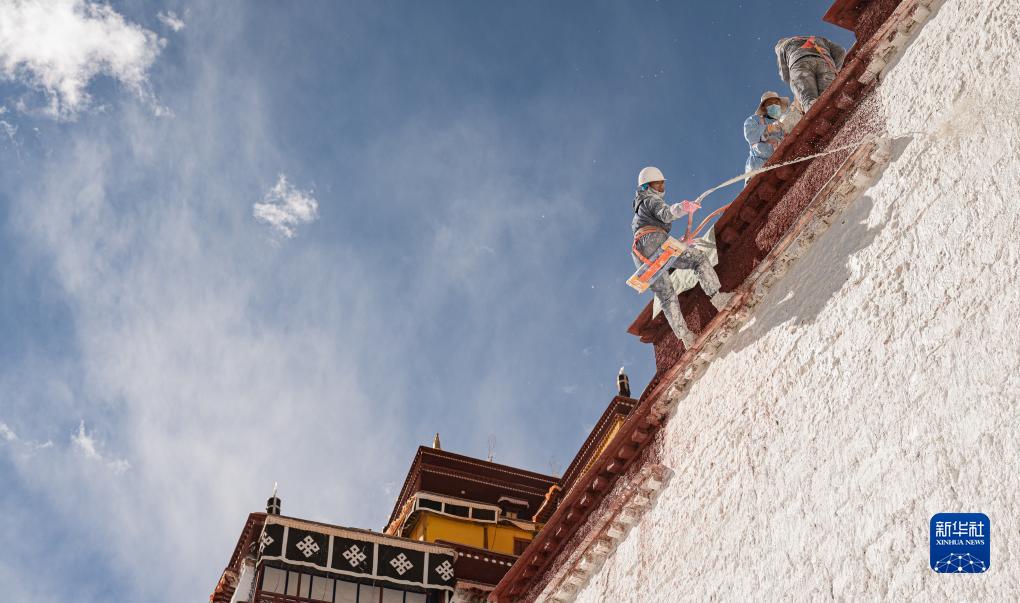 近日,西藏布達拉宮開始進行粉刷維護工作。為使經過一年日曬雨淋的紅墻白壁保持鮮亮光彩,每年秋冬交替時節,布達拉宮外墻都要進行粉刷“美容”。