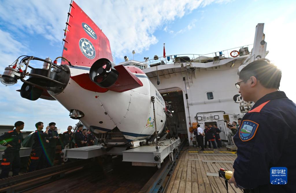 這是完成第二階段考古調查的“深海勇士”號載人潛水器(10月10日攝)。