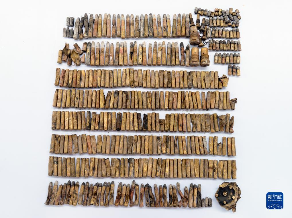 圖為威海甲午沉艦遺址出水的部分小口徑子彈合照。