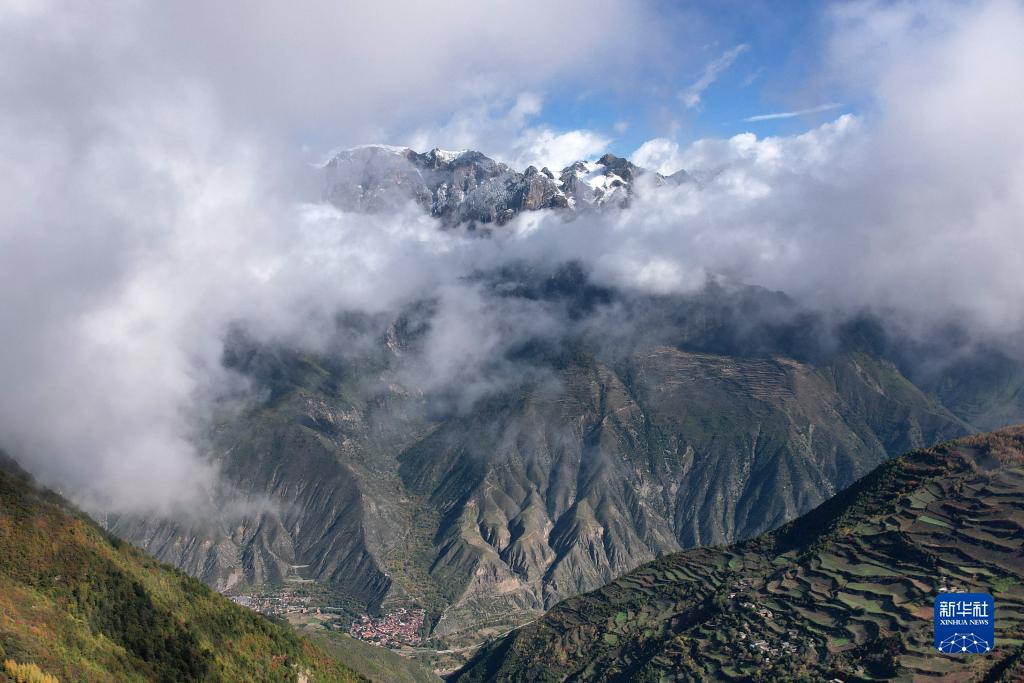 金秋時節,位於甘肅省甘南藏族自治州舟曲縣境內的拉尕山秋意漸濃,一場秋雪降臨後,拉尕山雲纏霧繞,斑斕如畫。
