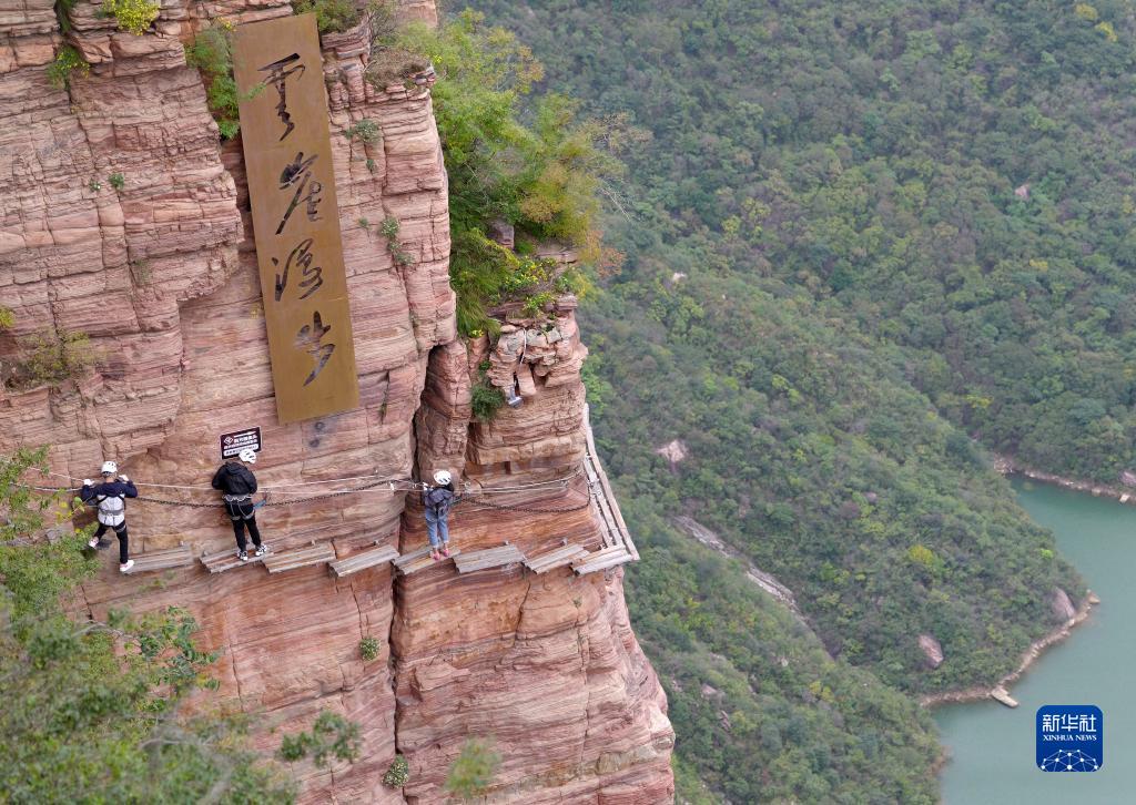 近年來,河南省輝縣市依託南太行山優質旅游資源,積極探索沉浸式文旅新模式,打造以“崖”為主題的景區,建成投運了“空中巴士”、蹦極等懸崖文旅項目,讓廣大游客沉浸式游覽在懸崖峭壁之中。