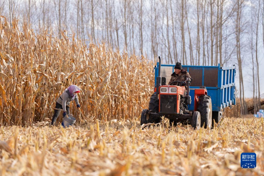 10月19日,在黑龍江省肇東市五里明鎮東升村,農民在田間駕駛拖拉機準備運輸收穫的玉米。