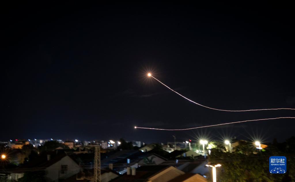 當晚,來自加沙的火箭彈不斷射向以色列南部邊境城市。以色列“鐵穹”防禦系統劃破夜空進行攔截。