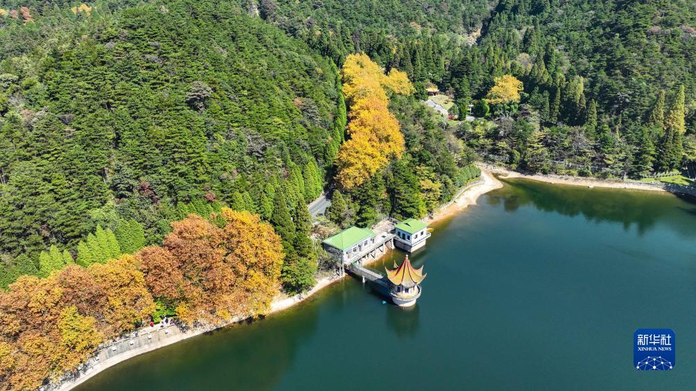 10月21日拍攝的廬山蘆林湖秋景(無人機照片)。