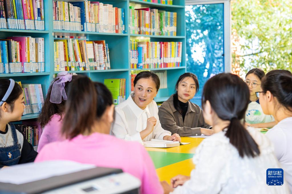 10月19日,常德市桃源特殊教育學校校長彭敏(中)在該校青年教師座談會上與青年教師溝通。