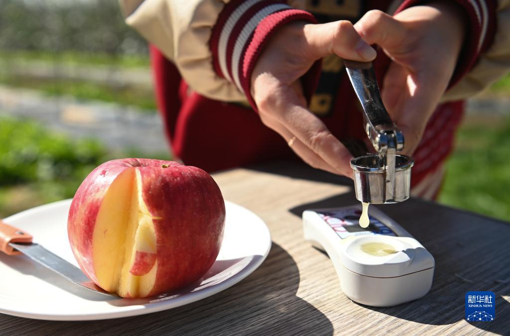 10月20日,西北農林科技大學科研人員在洛川蘋果試驗站檢測蘋果品質。