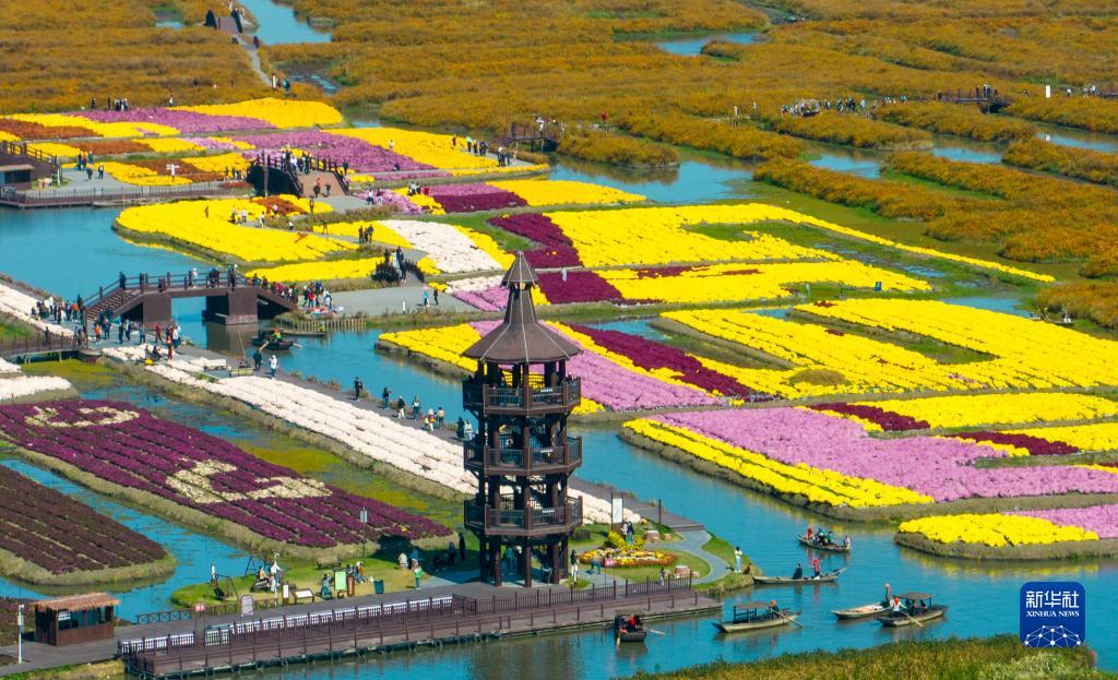 10月21日,游客在江蘇省興化市千垛景區賞菊游玩(無人機照片)。