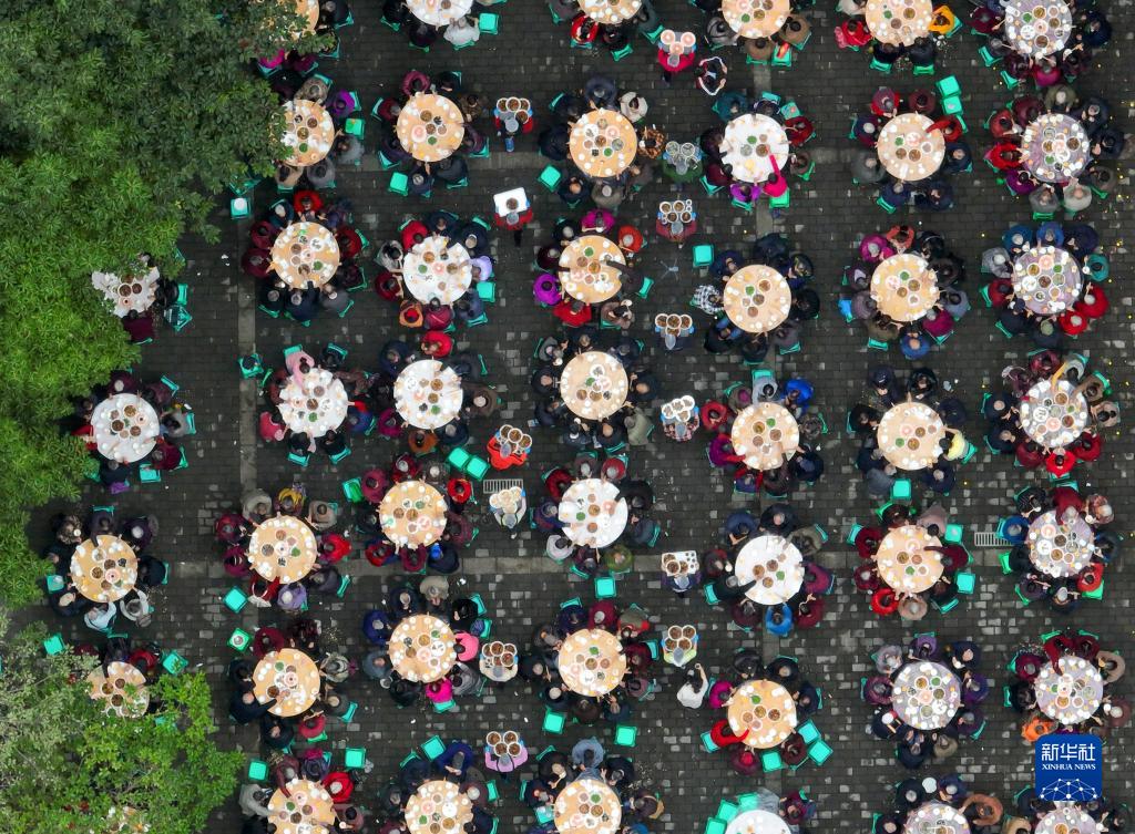 10月19日拍攝的華岩鎮石龍社區“長壽宴”活動現場(無人機照片)。