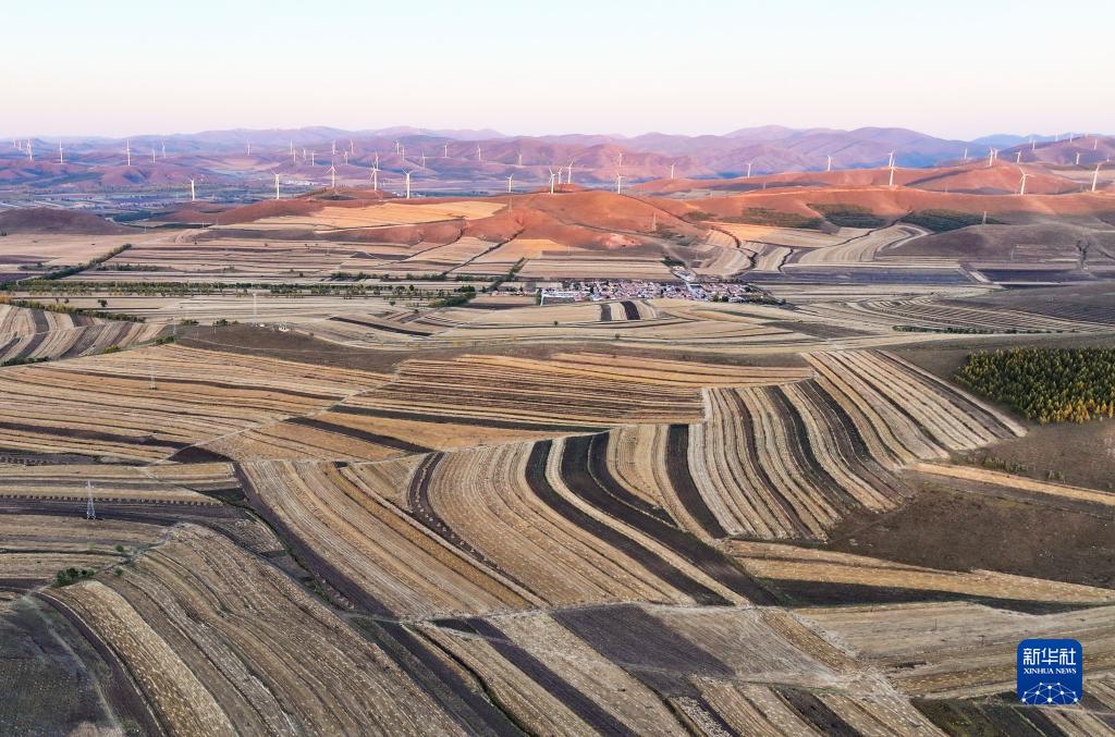 入秋以來,位於河北省北部的壩上地區很多植物顏色由綠變黃,秋意顯現,進入10月份,秋色更加濃郁,大地色彩斑斕,農民迎來豐收。
