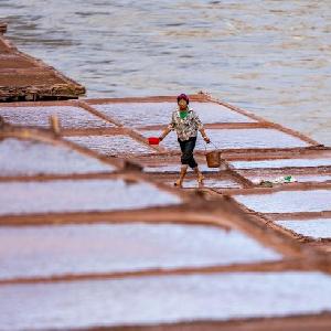 西藏昌都市芒康縣納西民族鄉位於瀾滄江畔,當地從唐代開始制鹽,距今已延續1300餘年。鹽田在瀾滄江兩岸依山而建,由多根木柱搭架,架上用透水性強的泥土鋪成平面夯實。當地村民仍保持着原始的手工曬鹽方式,他們從瀾滄江畔的鹽井、鹽池中取出滷水倒入鹽田,經陽光蒸曬、風乾,結晶成鹽。遠遠望去,鹽田錯落有致,景色奇美。