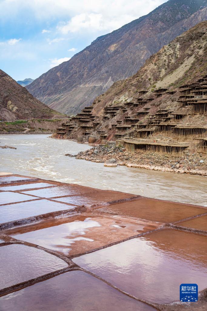 西藏昌都市芒康縣納西民族鄉位於瀾滄江畔,當地從唐代開始制鹽,距今已延續1300餘年。鹽田在瀾滄江兩岸依山而建,由多根木柱搭架,架上用透水性強的泥土鋪成平面夯實。當地村民仍保持着原始的手工曬鹽方式,他們從瀾滄江畔的鹽井、鹽池中取出滷水倒入鹽田,經陽光蒸曬、風乾,結晶成鹽。遠遠望去,鹽田錯落有致,景色奇美。