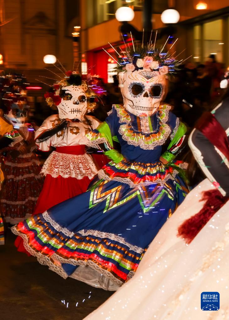 當日,美國芝加哥舉行名為“黑暗中的藝術”的萬聖節游行。