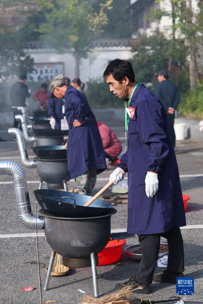 10月22日,參加炒制大賽的香榧種植戶們正在用鹽炒制香榧。
