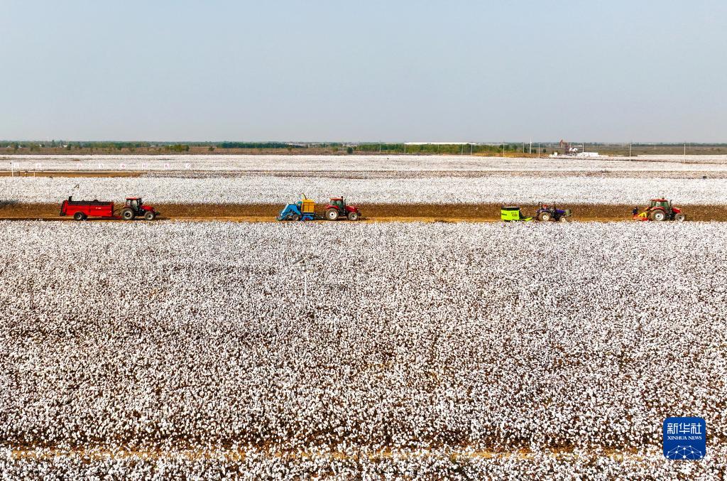 當日,山東省無棣縣西小王鎮國家級棉花生産基地核心示範區內一片棉花機採繁忙景象。無棣縣地處黃河三角洲棉區中心,可利用鹽鹼耕地資源豐富,植棉歷史悠久,常年植棉面積穩定在10萬畝左右。近年來,該縣引進專業科研團隊,對接新型農業經營主體、涉棉企業,推動以全程機械化為支撐的黃河三角洲棉區棉花産業高質高效發展。
