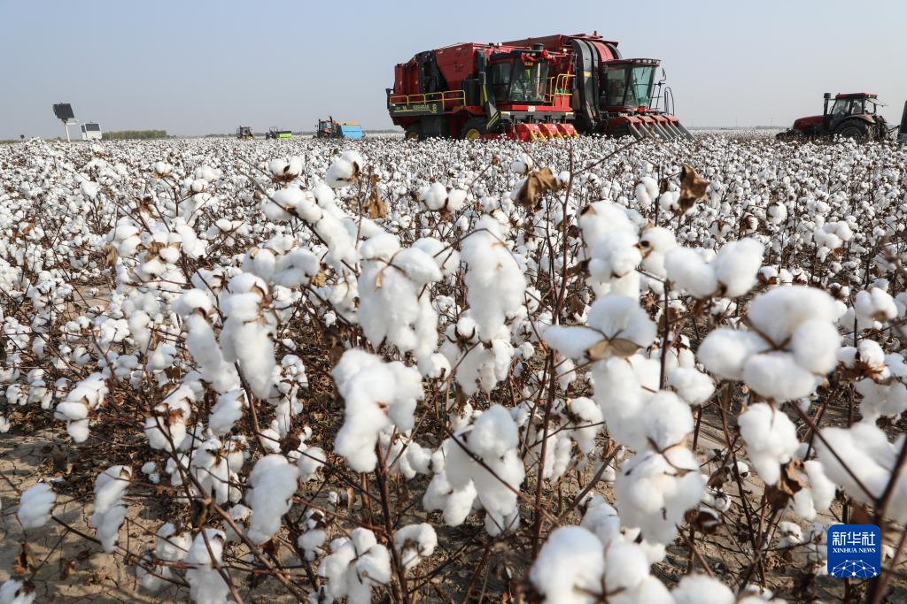 當日,山東省無棣縣西小王鎮國家級棉花生産基地核心示範區內一片棉花機採繁忙景象。無棣縣地處黃河三角洲棉區中心,可利用鹽鹼耕地資源豐富,植棉歷史悠久,常年植棉面積穩定在10萬畝左右。近年來,該縣引進專業科研團隊,對接新型農業經營主體、涉棉企業,推動以全程機械化為支撐的黃河三角洲棉區棉花産業高質高效發展。
